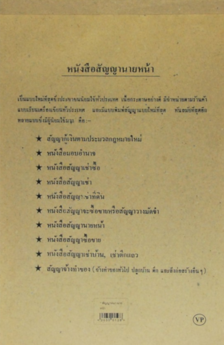 – ขนาดกระดาษกว้าง21.5xยาว34ซม. – จำนวน 28 แผ่น รวมปก – ความหนากระดาษ55แกรม – ปกผลิตจากกระดาษสีน้ำตาลทึบแสง – เนื้อในผลิตจากกระดาษปอนด์ขาวอย่างดี – เป็นแบบใหม่ที่สุดตามประมวลกฏหมายใหม่ ซึ่งประชาชนนิยมใช้ทั่วประเทศ – เนื้อกระดาษอย่างดี – แบบฟอร์มใหม่และทันสมัยเข้าใจง่าย... read more